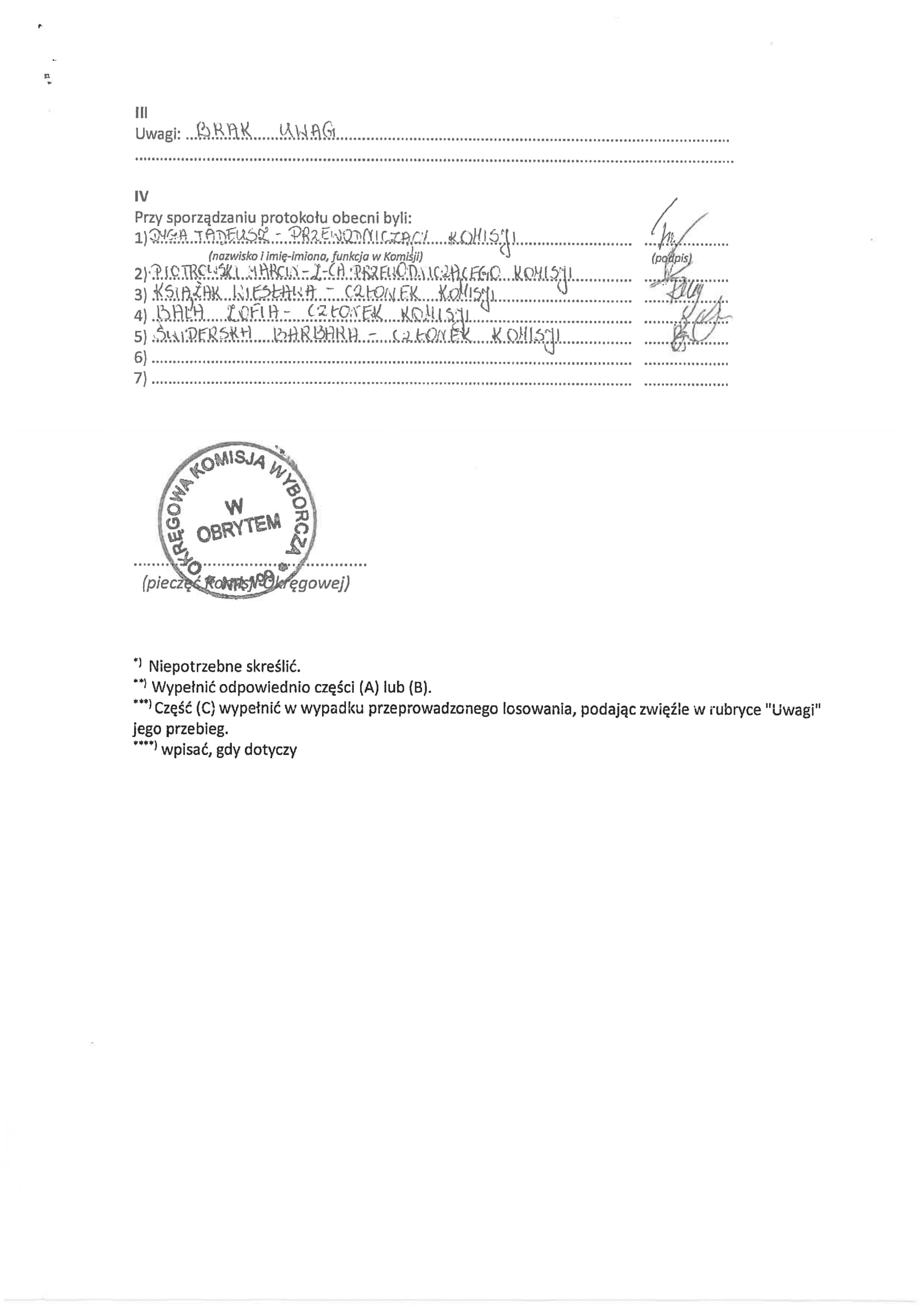 Protokół wyników głosowania i wyników wyborów do rady powiatowej mazowieckiej izby rolniczej w powiecie pułtuskim